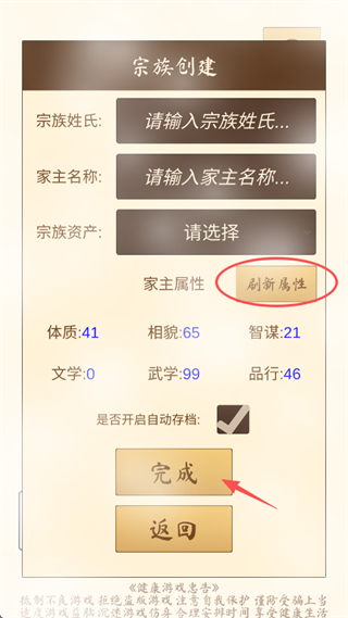 2、可以刷新属性,建议多刷新,方便开局便可直接入仕,并且后代的成长性更加优秀。