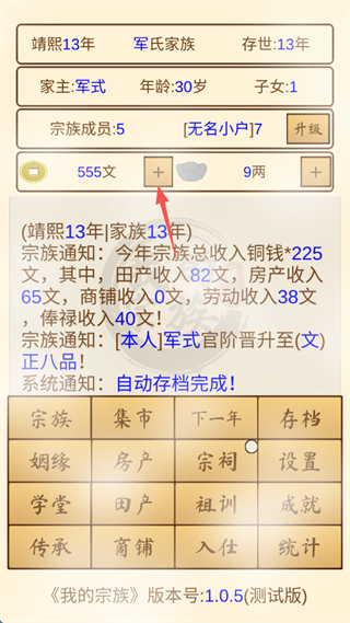 我的宗族游戏中玩家需通过联姻来提升自己家族的人口、通过集市买卖商铺田产提升家族的收入,而有了人口和金钱,玩家就能培养人才,你需要精确把控幼儿的培养方向,随后决定其后期入仕的方向,为文或武,直至成为文武之首,促使家族成为真正的永恒家族。