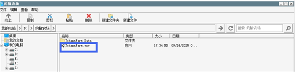 7、点击【JohansFarm.exe】即可启动,会黑屏一段时间,耐心等待就行。