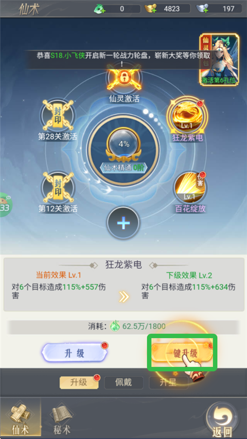 升级仙术可以增加对敌人造成的伤害、扩大伤害范围等,增强战斗力。