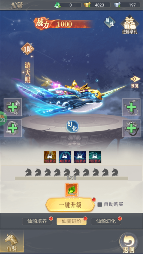 为仙骑进阶可以提升它的生命、攻击等属性数值。