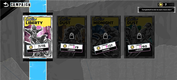 极速前进游戏提供重力感应、左右键位操作方式,且真实模拟摩托车咆哮的声浪及超出、翘头操作带来的刺激感!而随着玩家的进度不断推进,玩家还可解锁多种模式玩法,如职业模式、放松模式、无尽模式等模式,还可以设置不同天气!