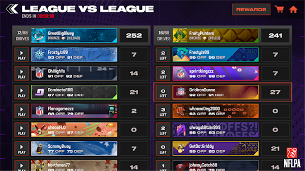 - 完成挑战并升级您的 NFL 团队以攀登排行榜!
