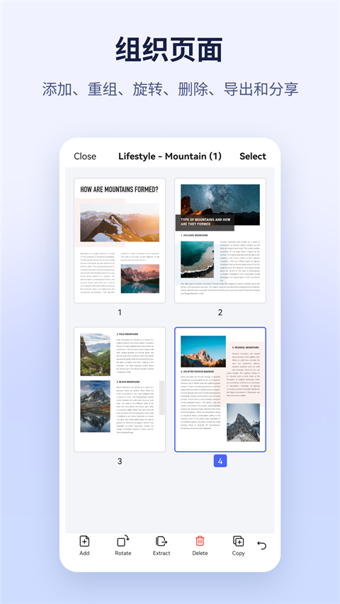 从照片、图片或者扫描文件快速创建PDF文档,几秒钟完成,立即就可以通过内置接口把创建好的PDF文档分享出去。