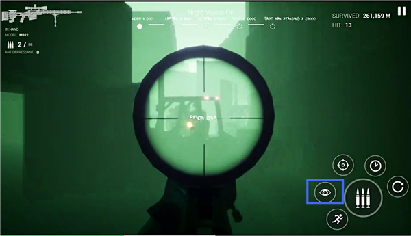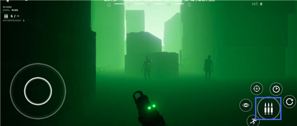 1、进入游戏,遇见突变体,点击子弹图标进行射击。