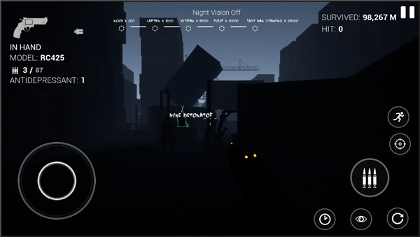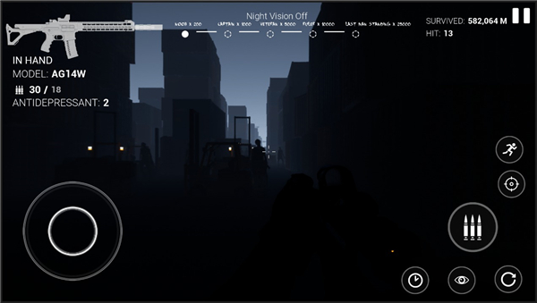 游戏画面很有压迫感,暗色调加上颗粒感滤镜和动态光影,把末日城市的压抑氛围渲染得很到位。城市里的每一个角落都充满了危险,随时可能出现变异的感染者或者隐藏的资源点。随着关卡推进,敌人的数量、速度和攻击力都会增加,难度逐渐提升。