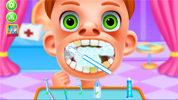 2、随机给小朋友们查看卫生情况,这里举例口腔卫生情况,下方有道具,从左用到右;