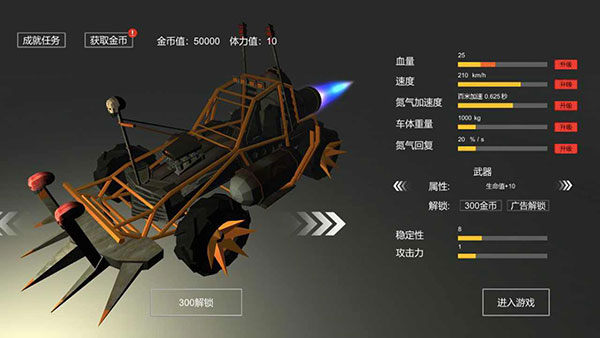 6、获得的金币可以解锁更好的车辆和武器,解锁成就还能获得额外金币。