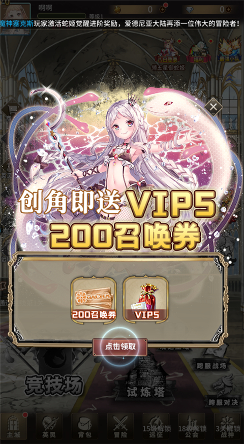 开局即送:VIP5、高级召唤券*200;