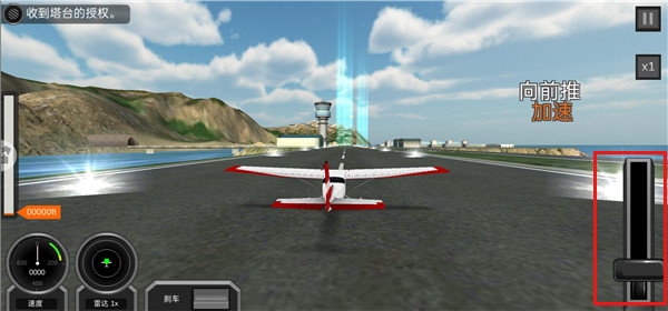 3、进入游戏,操作加速杆使飞机加速。