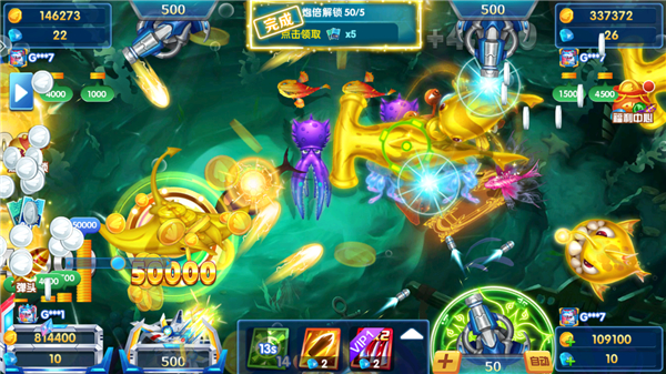 游戏中有丰富的特色玩法,比如经典奖金鱼、狂暴锁定诱饵等多种道具助力称霸四海,还有金龙暴击和巨妖封印等高倍率玩法。特别是聚宝盆一炮9999倍的爆率设计,让玩家有机会瞬间成为亿万渔王。这些设计不仅增加了游戏的趣味性,也让捕鱼过程充满惊喜和挑战。