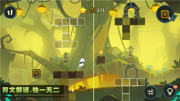 每次穿过林中路都会有新的机关出现,你需要巧妙的使用符石来度过难关。