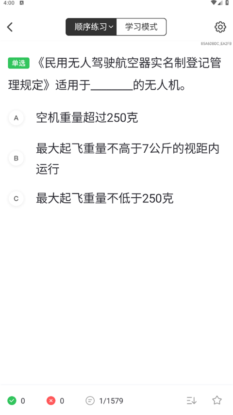 最近更新到v1.0.3版本,题库又做了同步更新,看来学习资料一直保持最新。如果你正在备考无人机执照,这款App绝对值得一试,它能让你的学习事半功倍!