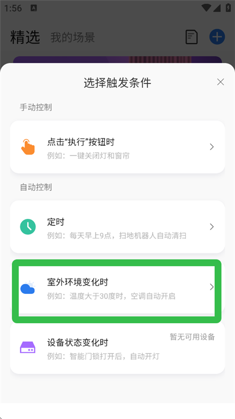 5、智能场景新体验,一键开启推荐场景和自定义场景自由DIY,为您开启智能轻便生活。