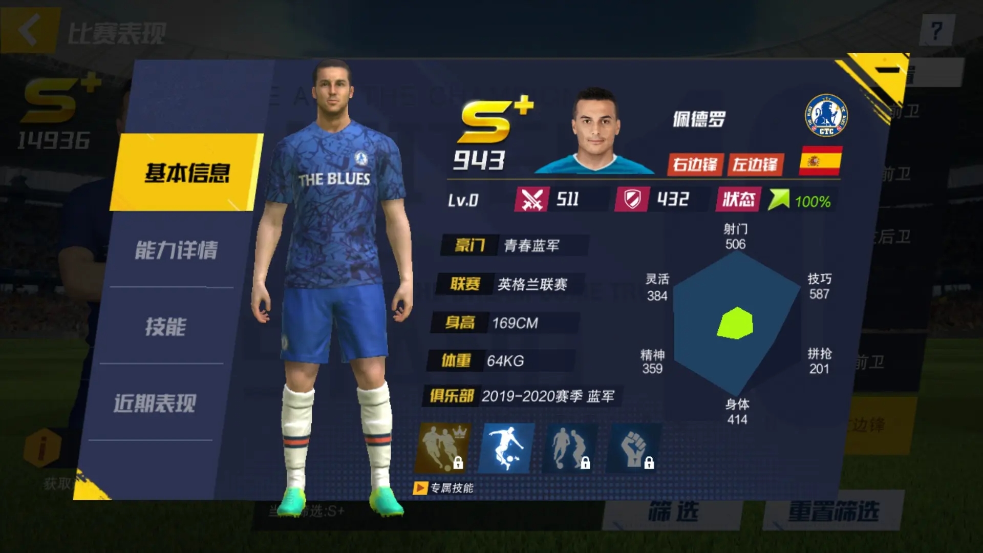 2、佩德罗。踢生涯赛可以获得佩德罗。有些玩家可能会问,佩德罗是所有S+球员里战力最低的,为什么还要选择他。这就是我要说的最重要的一点,球员技能和球员位置契合度问题。虽然佩德罗战力是S+球员里最低的,但是通过大量比赛证明,球员技能和球员位置契合度高的球员对球队战力在比赛中加成很大。佩德罗就是一个这样的球员。