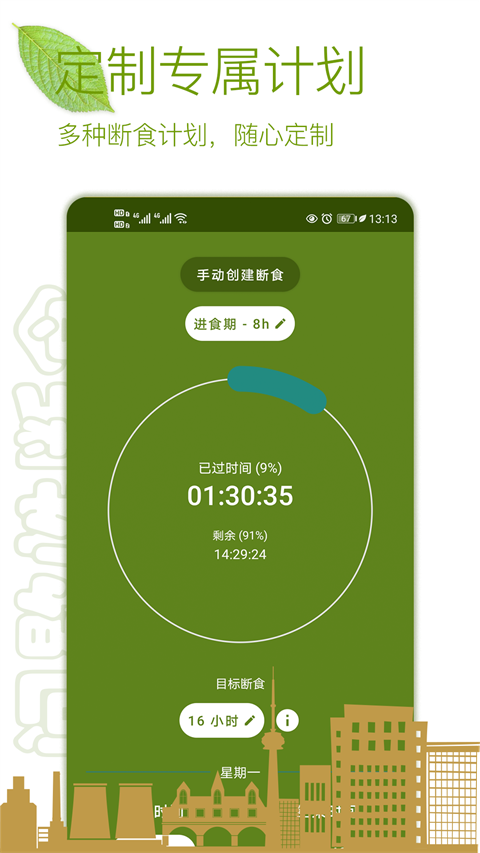 间歇断食追踪器有多种断食计划,适合初学者、有断食经验的人群,男性和女性。断食追踪器会引导你完成计划,无需改变饮食习惯,即可轻松坚持下去。如果你未满18岁,处在怀孕或哺乳期,有健康问题或体重过轻,请在断食前向医生咨询。