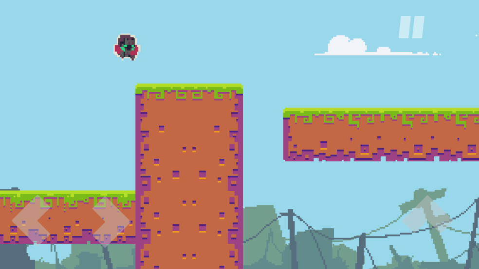 2、游戏操作简单,左侧按钮控制角色前后运动,右侧按钮控制角色跳跃