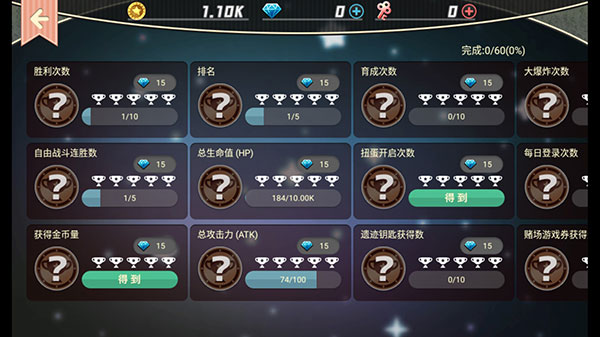 5、你所努力缔造的辉煌成绩都会汇集在这个页面哦,收集奖励就会获得钻石作为报酬哦。