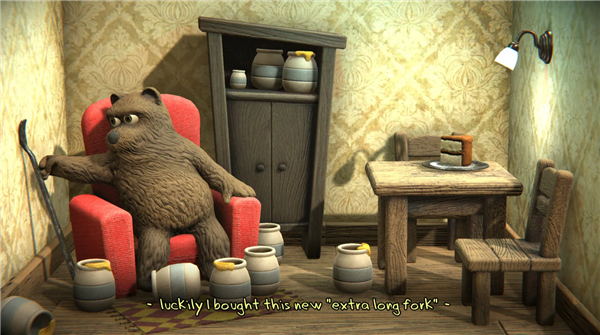游戏里有一些提示:比如先拿起左边的道具,然后一点一点地把桌子移过来。虽然过程有点漫长,但每当成功拿到蛋糕的时候,那种成就感特别强。而且游戏里的画面也很有艺术感,像是一个有趣的绘本一样。