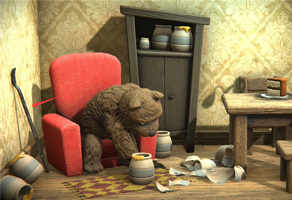 2、利用房屋内的其他道具才能够到蛋糕,因为小熊一动不动。