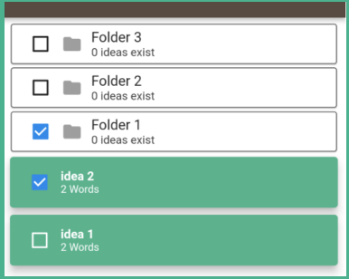 通过按住一个想法或文件夹,您可以选择多个项目,选择后,您可以“移动文件夹”、“添加标签"和“删除”