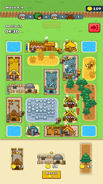 种田与征战是一款像素塔防手游。游戏节奏张弛有度,你需要在网格地图上规划自己的农场,放置不同形状的田地、房屋和功能建筑。随着农作物的成熟,你将获得金币与资源,用来扩建领地、解锁更多设施。这个阶段就像是一场温柔的田园诗,细腻又充满成就感。游戏后期敌人会一波波袭来,你必须利用积累的资源组建防御、训练士兵、布置陷阱。农田的布局不仅决定收成,更会影响战局。一个放错位置的建筑,可能让你整个经济体系崩塌,而一个巧妙的资源联动,又能让你逆转局势。