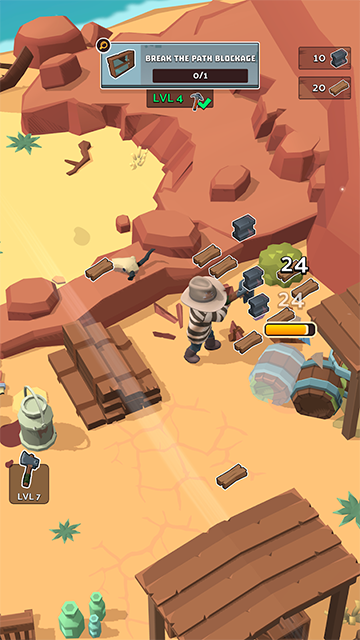 逃生西部游戏(West Escape)是一款充满挑战的角色扮演闯关手游。游戏中,你将化身为一位勇敢的冒险者,面临逃脱追击者的任务,同时还要寻找自己心爱的人。为了生存,探索之旅中你需要收集各种资源,如食物、水源、药品等,它们将帮助你恢复体力并提升能力。木材、钢板、铜套等则是打造和升级装备的关键,强化你的攻击力和生命值。随着不断的冒险和战斗,你将一步步变得更强,能够应对越来越艰难的挑战。
