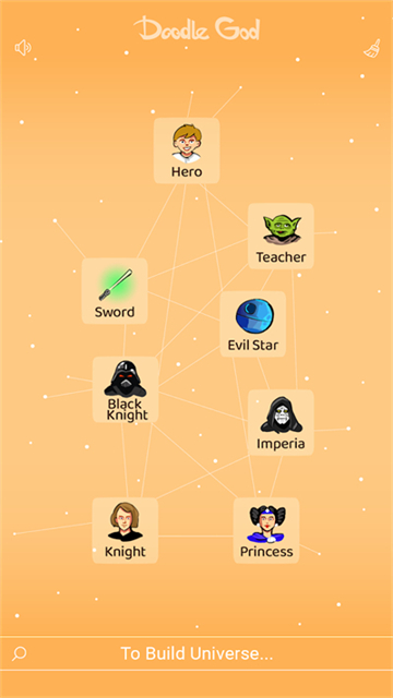 游戏有主线模式,任务模式和猜谜模式三种玩法。主线模式是围绕四种基础元素推衍万物的生成模式;任务模式是根据任务要求在指定几种元素中推衍出任务要求的物品;猜谜模式:从基础元素中找出谜底要求元素的推衍途径。这三种模式都可谓充满了挑战,主线考验我们的自由发挥,任务考验我们的组织能力,猜谜考验我们的逆向思维。
