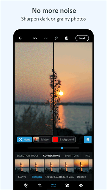 Ps手机版是一款由Adobe公司为手机端用户打造的图片编辑软件,为Android用户提供快速、简便的图像编辑工具。该应用程序提供了许多强大的功能,包括裁剪、旋转、调整颜色、应用滤镜和添加文本等,使得用户能更加轻松的直观通过拖动和缩放来调整图像的大小和位置,也可以使用各种滑块来调整图像的亮度、对比度、饱和度和色调。另外,Ps手机版还特别制作了一些高级功能,例如去除红眼、修复图像中的缺陷和添加边框等,帮助你真正把握编辑图片。Ps手机版支持一键社交媒体平台分享和图库保存,使你可以轻松地分享您的编辑作品。有需要的小伙伴可以下载试试看!