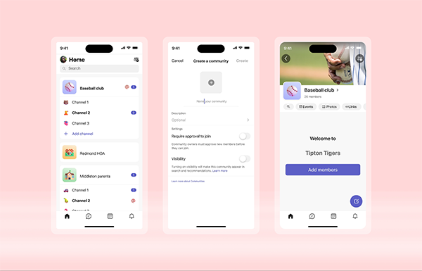 使用频道保持社区的井然有序。使用嵌套对话创建投票,并分享照片、文件、表情符号和GIF动图。