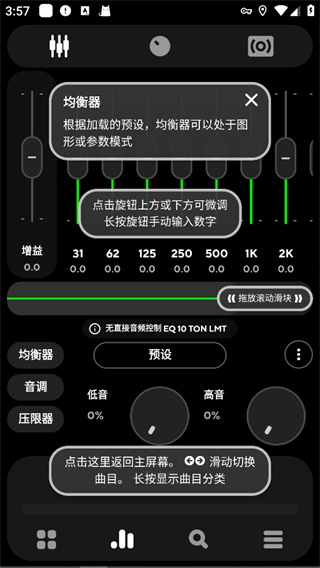 根据加载的预设,均衡器可以处于图形或参数模式