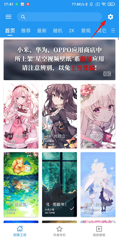 7、若锁屏壁纸未完成设置,可以点击右上角的设置图标;