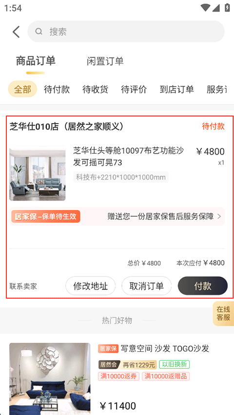 2、在商品订单功能页如果您已下单付款但未发货可以尝试申请退款取消订单,若已发货则需要联系商家或客服进行协商。