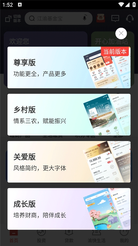 1、在APP主页左上角点击“切换版本”按钮;