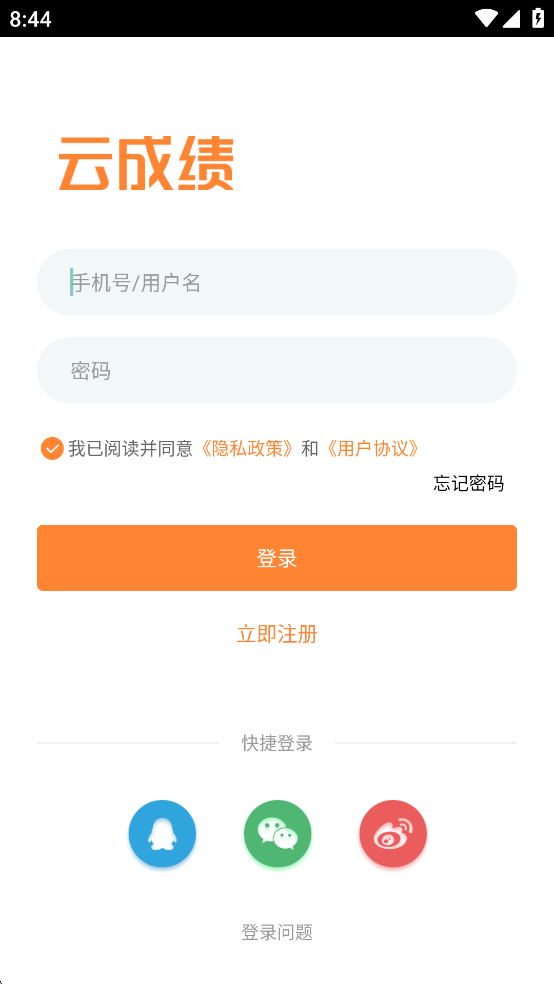 3、使用学校下发的用户名和密码登陆,即可查询成绩