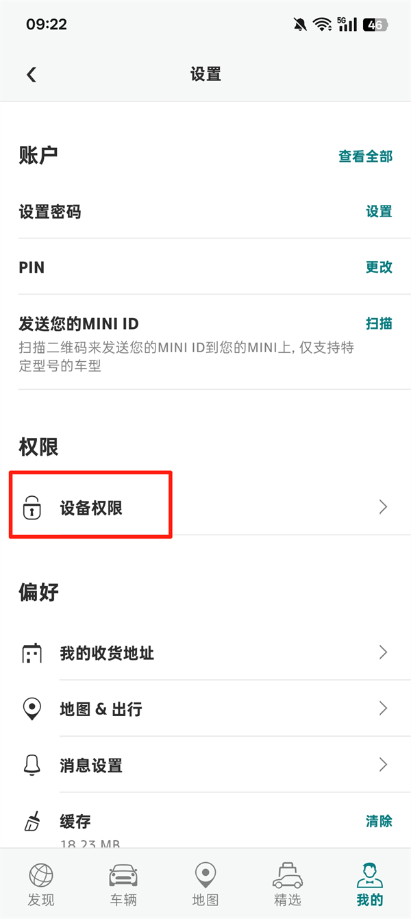 3、点击【设备权限】