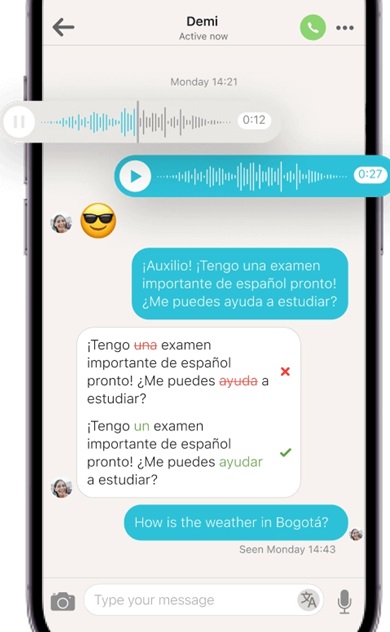 选择任何方式进行对谈:信息、语音信息、语音或视屏通话。软件中还内建修正和翻译工具帮助语言交换更顺畅。