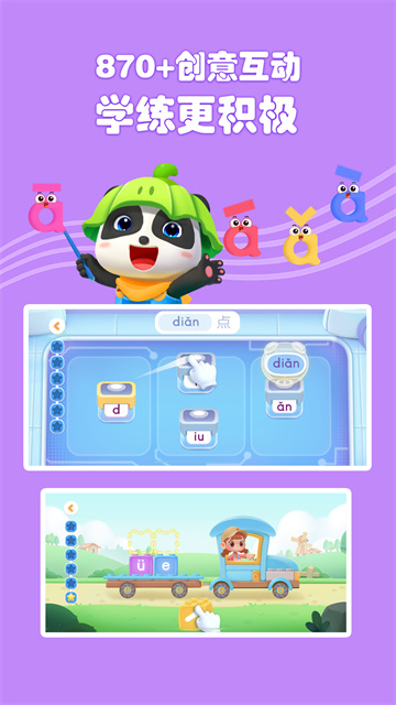 【宝宝巴士拼音】打造870+个拼音互动环节、51集原创拼音动画和15首拼音启蒙儿歌,并不断更新拼音故事绘本。以有趣的学拼音互动、拼音启蒙儿歌动画和有声绘本读物,点燃儿童拼音发音、点读、拼读的兴趣,加深拼音记忆,打好识字认字基础。