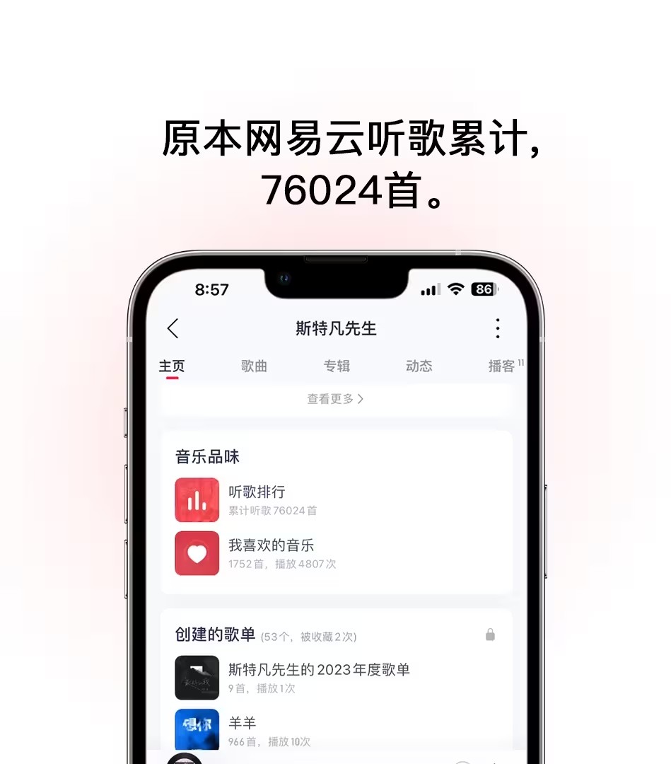 首先查看一下我原本的听歌数量,我的累积听歌是76024首。见证奇迹的时候到了,我要施展魔法了。