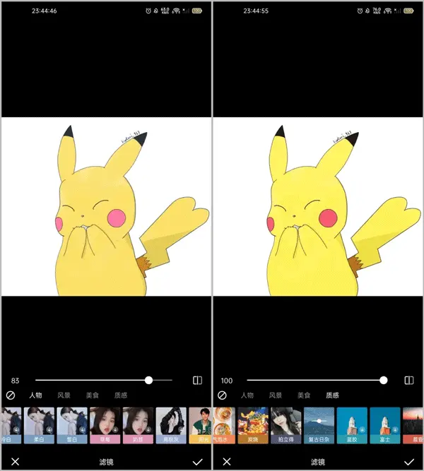 2、滤镜功能相当多样,涵盖了人物、风景、美食和质感这四大类常用滤镜,这些足以应对大多数日常的图片编辑需求。