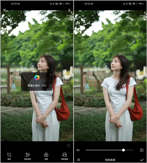 3、智能美颜功能确实非常出色,处理后的效果相当自然。用户可以根据个人喜好,轻松调整美颜的强度,以达到最满意的效果。