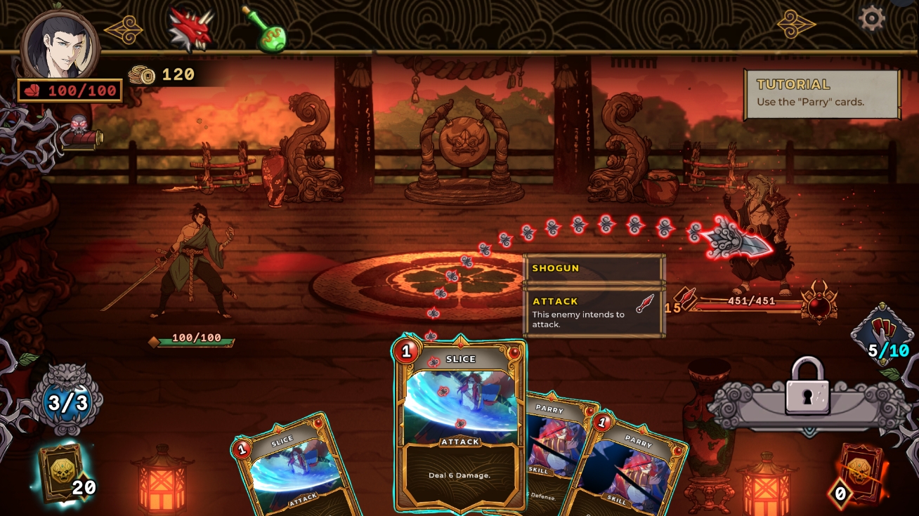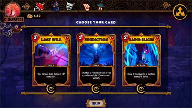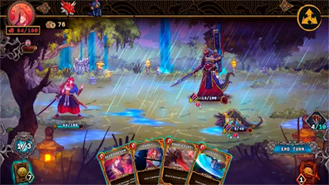 4、每轮开始时,你将从牌组中抽取五张卡牌加入手牌,只要行动点充足且未被负面效果影响,你可以按自己的策略打出卡牌。当敌人发起进攻,拖动防御类卡牌上场,抵御即将到来的威胁。