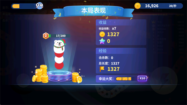 游戏的操作很简单点击加速控制小蛇吃掉比自己小的或者吃金币将自己变的越来越大最后称霸全场