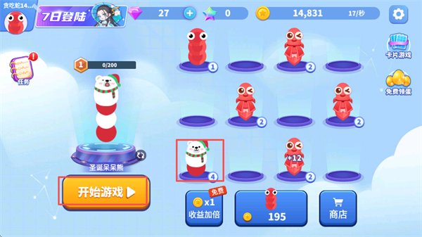打开游戏,你可以点击购买小蛇然后将两个相同的合并就可以成为更高级的蛇