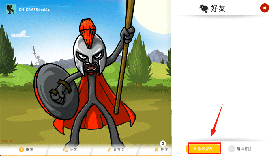 1、在火柴人战争遗产3主界面,点击右上角的【好友】图标;