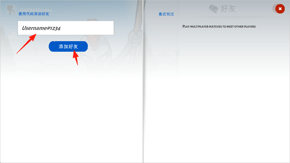 3、在输入框中填写好友代码,并点击【添加好友】;