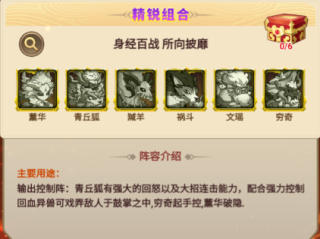 身经百战,所向披靡;由薰华、青丘狐、羬羊、祸斗、文瑶、穷奇组成;