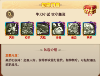 牛刀小试,攻守兼备;由天狗、相柳、灵鲲、讹兽、凿齿、瞬即组成;