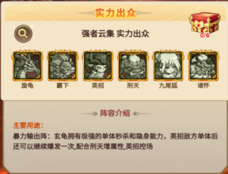 强者云集,实力出众;由旋龟、霸下、英招、刑天、九尾狐、诸怀组成;
