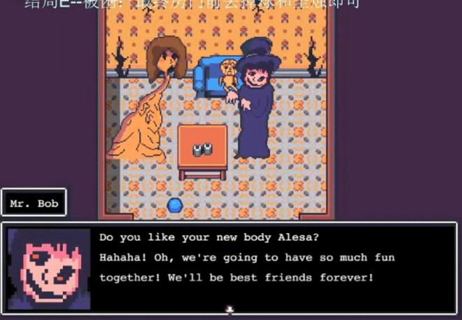 游戏背景设定在阿莱莎18岁时接受一次神秘任务,调查一户诡异的家庭,逐渐揭开她童年与“鲍勃先生”相关联的恐怖秘密。玩家需要在探索中找到各种物品和钥匙来解锁新的区域和剧情,最终可能面临多个结局,包括懦夫、被困、被做成灯等不同命运。